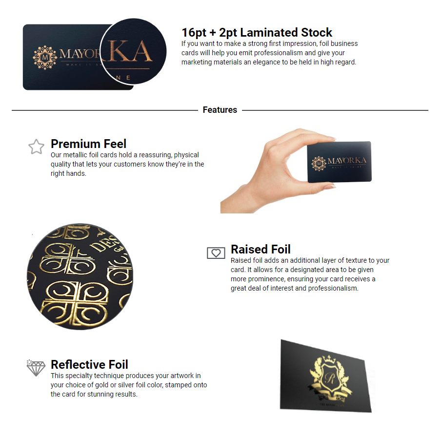 In addition to the second layer added for the foil printing process, your file should have a third layer for the spot uv. Below are the additional guidelines for preparing your files for foil printing with spot uv.